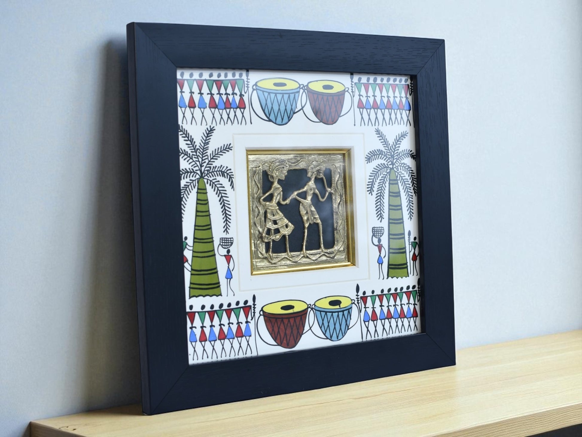 This Dokra wall hanging showcases traditional Indian metalcraft, making it an exquisite gift choice. Handcrafted with intricate detailing, it adds a unique artistic touch to any space. Its durable metal composition ensures lasting beauty, while the cultural significance makes it a meaningful present for art lovers and collectors alike. Perfect for enhancing home décor with a blend of heritage and elegance.