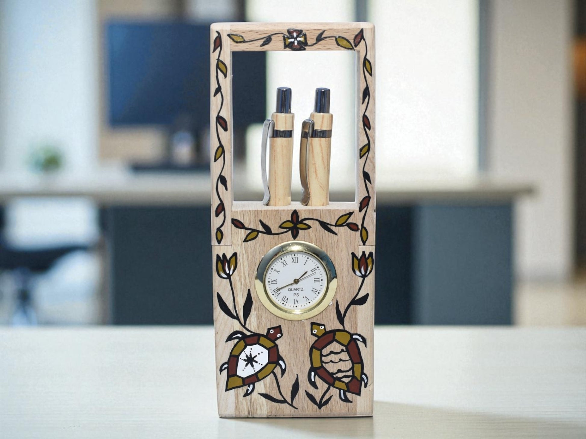 Wodden crafted Double Pen stand with Sohrai Painting for your tabel